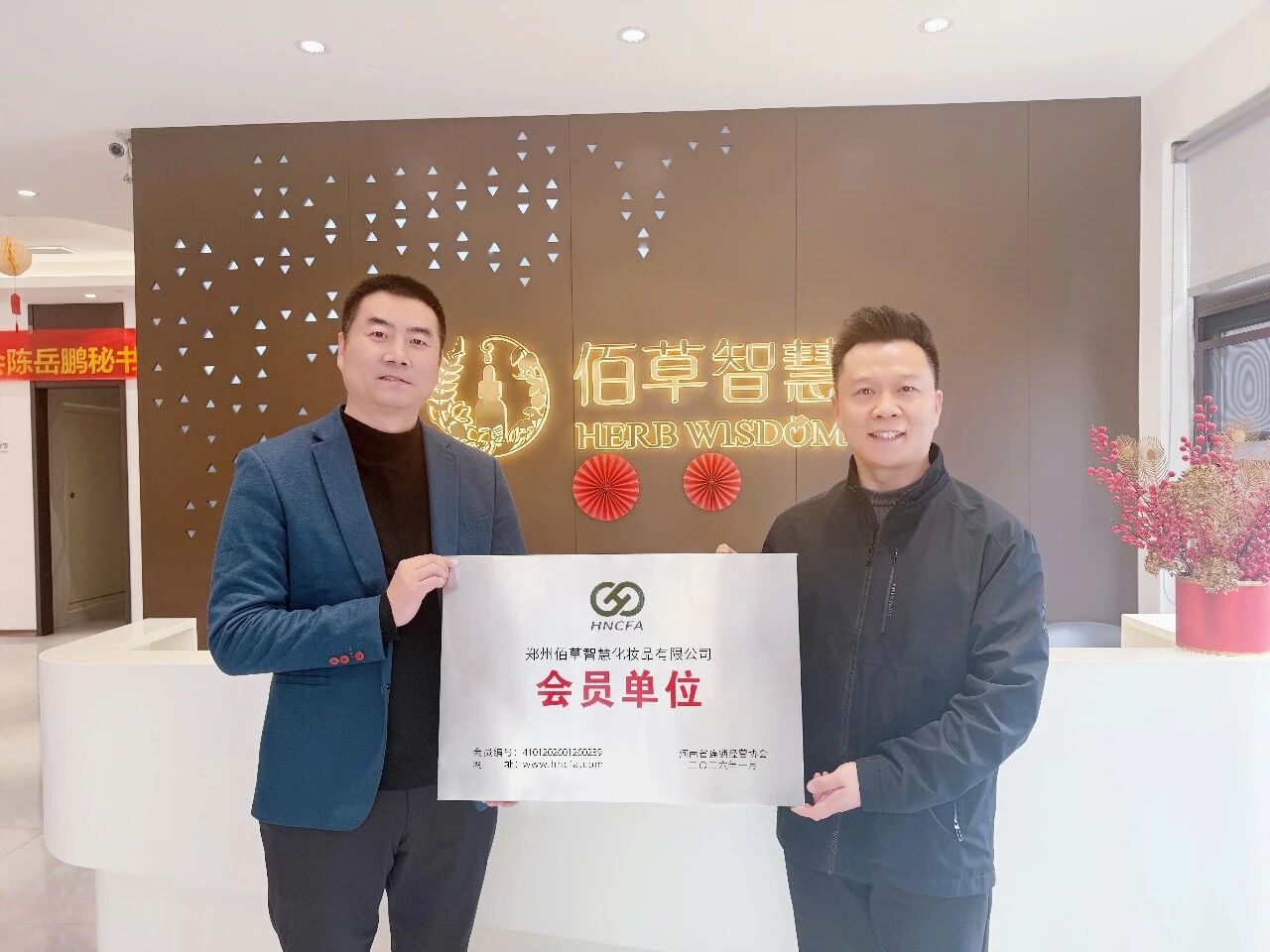 春启新程,载誉前行!今日,佰草智慧精油美肤连锁斩获行业高度认可,正式荣获河南省连锁经营协会“会员单位”称号。河南省连锁经营协会陈岳鹏秘书长亲临佰草智慧指导交流,与公司董事长李勇涛先生深入会谈,共同见证这一荣耀授牌时刻,此举标志着佰草智慧在美业连锁赛道的深耕成果获行业协会高度认可,正式跻身河南连锁行业高质量发展核心阵营。